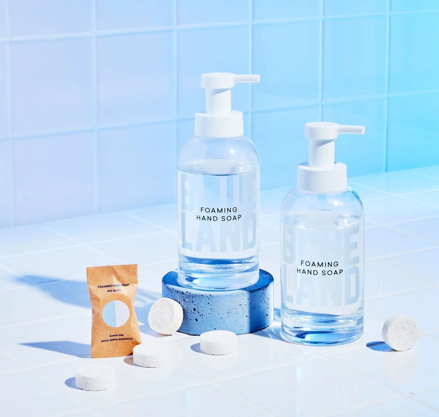 Blueland was founded by Sarah Paiji Yoo to cut down on the use of plastic (Americans dispose of an average of 200 pounds of plastic per person per year). She was inspired after researching the safeness of tap water vs. bottled water for infants, horrified upon finding out bottle water contained microplastics. Blueland specialties in dissolvable cleaning tablets that replace common household products. It’s so simple—and ingenious!