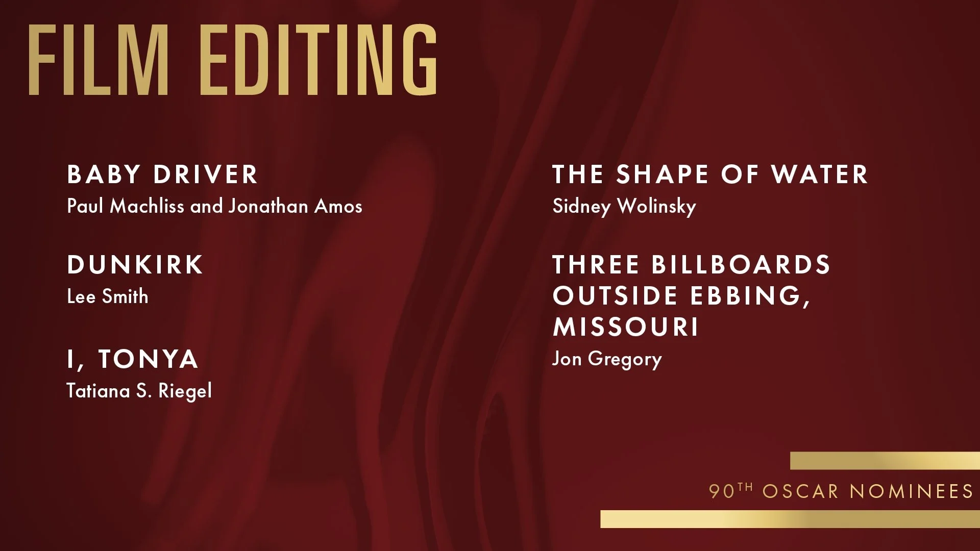 When the nominations were originally announced I thought the lack of an editing nod for 'Get Out' meant it might not get a Best Picture nomination. Thankfully the film did end up getting nominated for Best Picture, but the lack of its nomination here probably means it won't end up winning the top prize. The winner of Best Picture almost always has at least a nomination for Best Film Editing. Right now I'm going to guess 'Dunkirk' will win due to its excellent time-bending style.