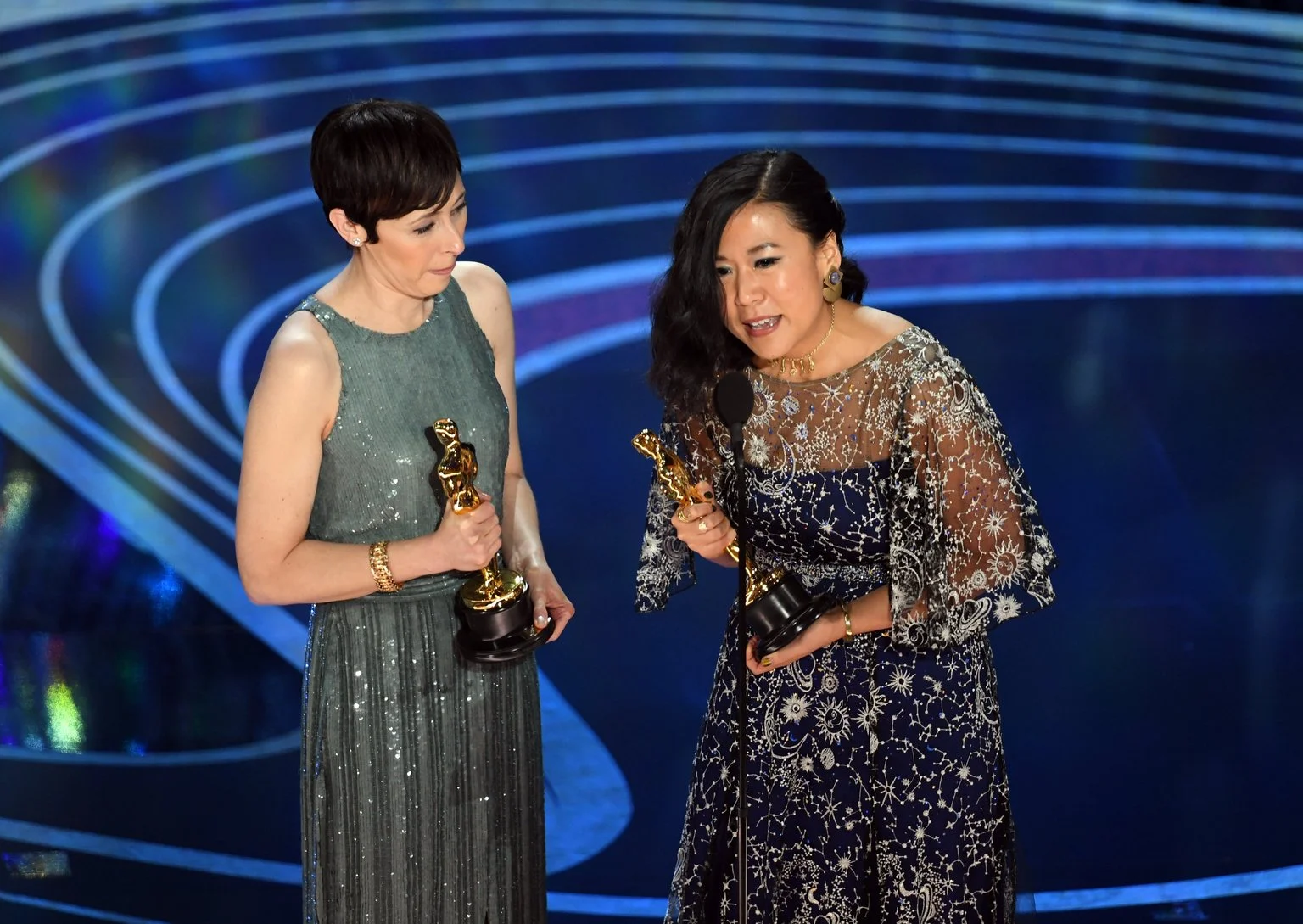 ‘Bao’ Director Domee Shi and Producer Becky Neiman-Cobb accepting the award for Best Animated Short.